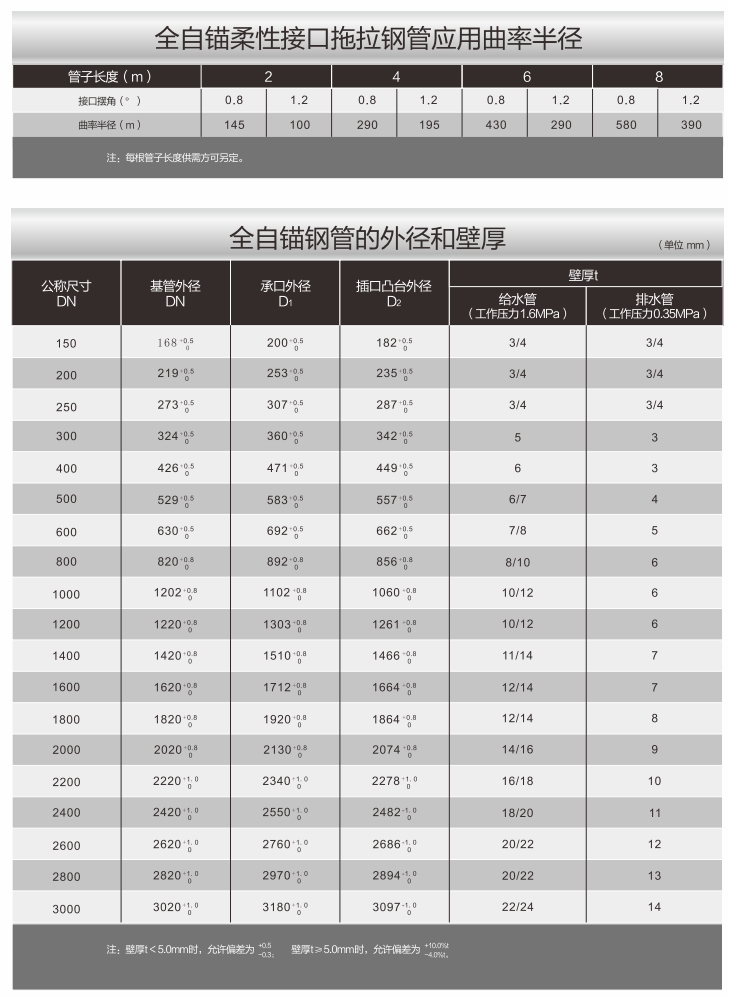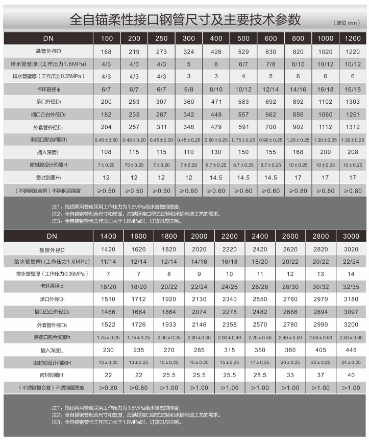 適合埋地、管廊明敷設(shè)施、非開挖頂拖管、和輸送直飲水(可消除管道對(duì)水質(zhì)二次污染)的全自錨柔性接口鋼管和不銹鋼襯里復(fù)合鋼管。